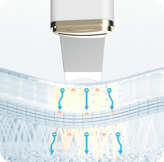 - Технология ультразвукового ионтофореза улучшает впитывание средств по уходу за кожей, позволяя питательным веществам достигать слоя дермы и глубоко питать кожу.