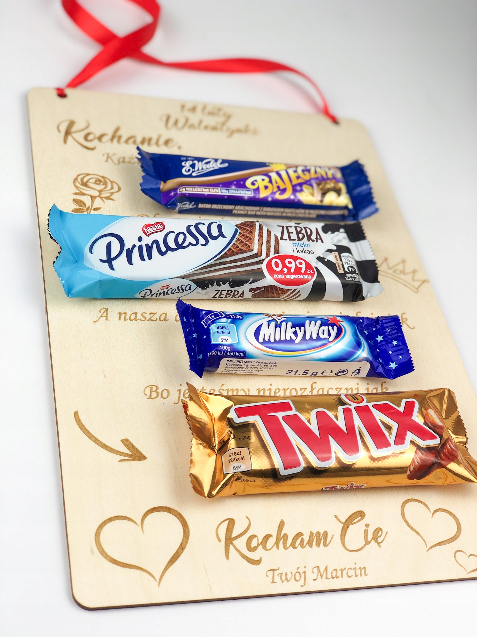 Подарок ко Дню святого Валентина с персонализацией. Подарите любимому человеку деревянную рамку со сладостями.