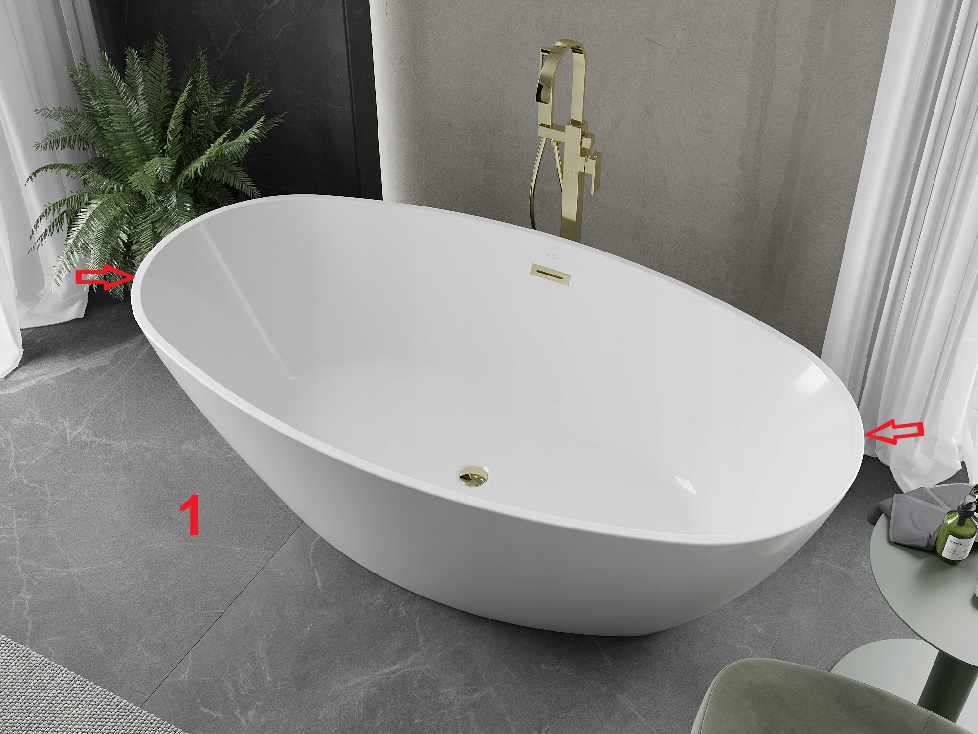 Отдельностоящая ванна Mexen Eris 180 x 95 см 2-й сорт, белый, золотой перелив