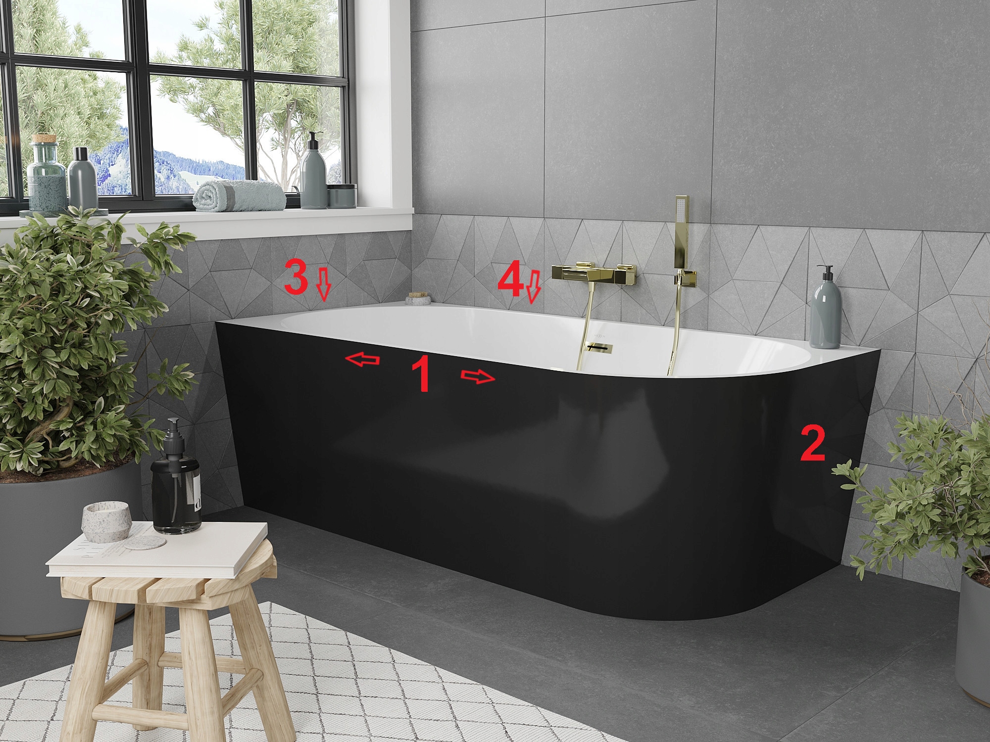 Отдельностоящая угловая ванна Mexen Mia, левая, 170 x 80 см, 2-й сорт, белый/черный, золотой перелив