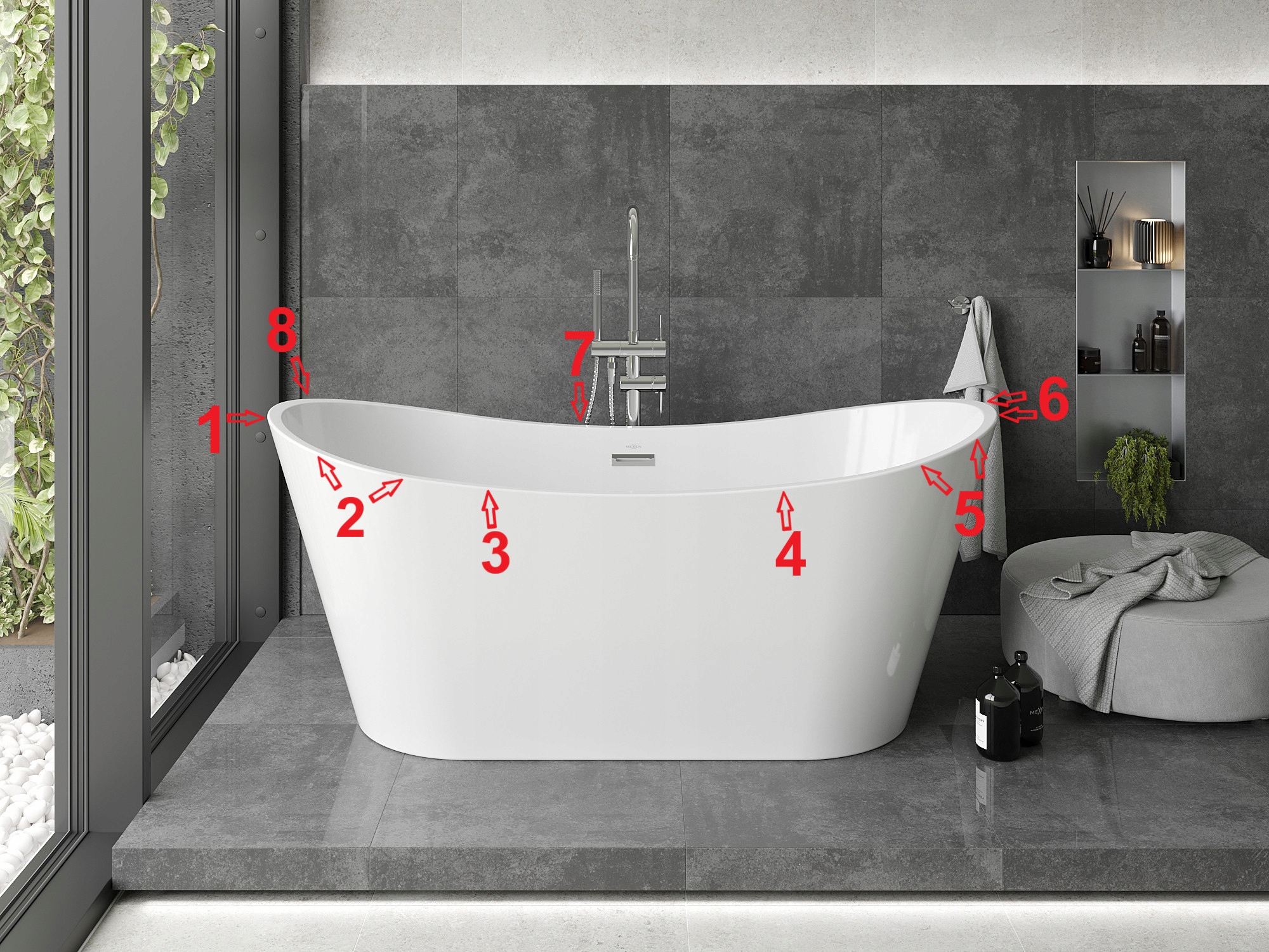 Отдельностоящая ванна Mexen Montana 170 x 80 см, 2-й сорт, белый, хромированный перелив