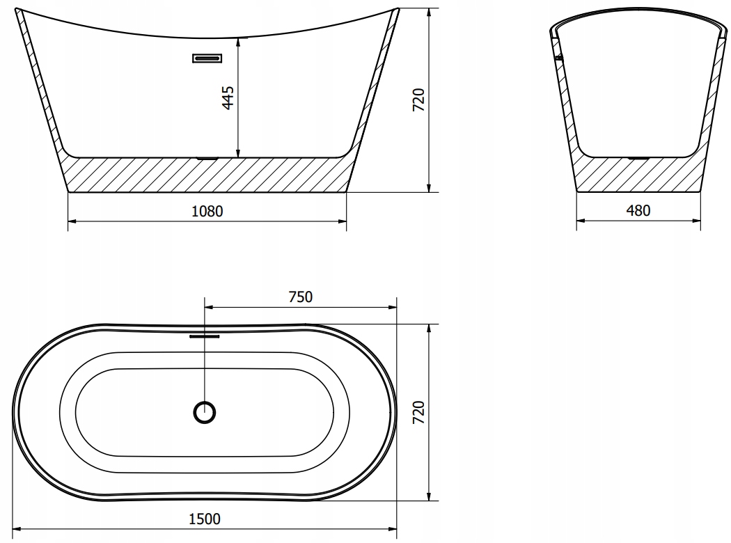 ОТДЕЛЬНО СТОЯЩАЯ ВАННА MONTANA 150 х 72 + ЗОЛОТОЙ СИФОН 2 сорт.