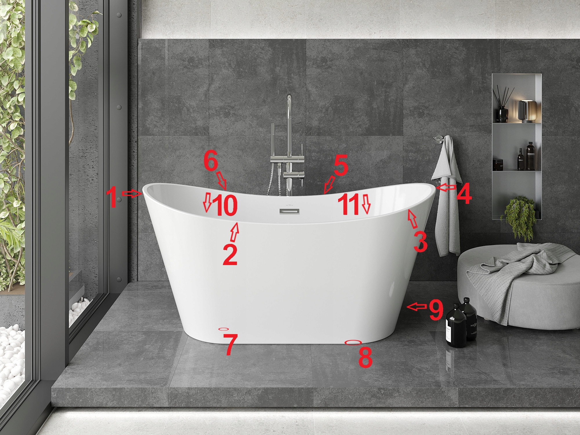 Отдельностоящая ванна Mexen Montana 150 х 75 см, 2-й сорт, белый, хромированный перелив