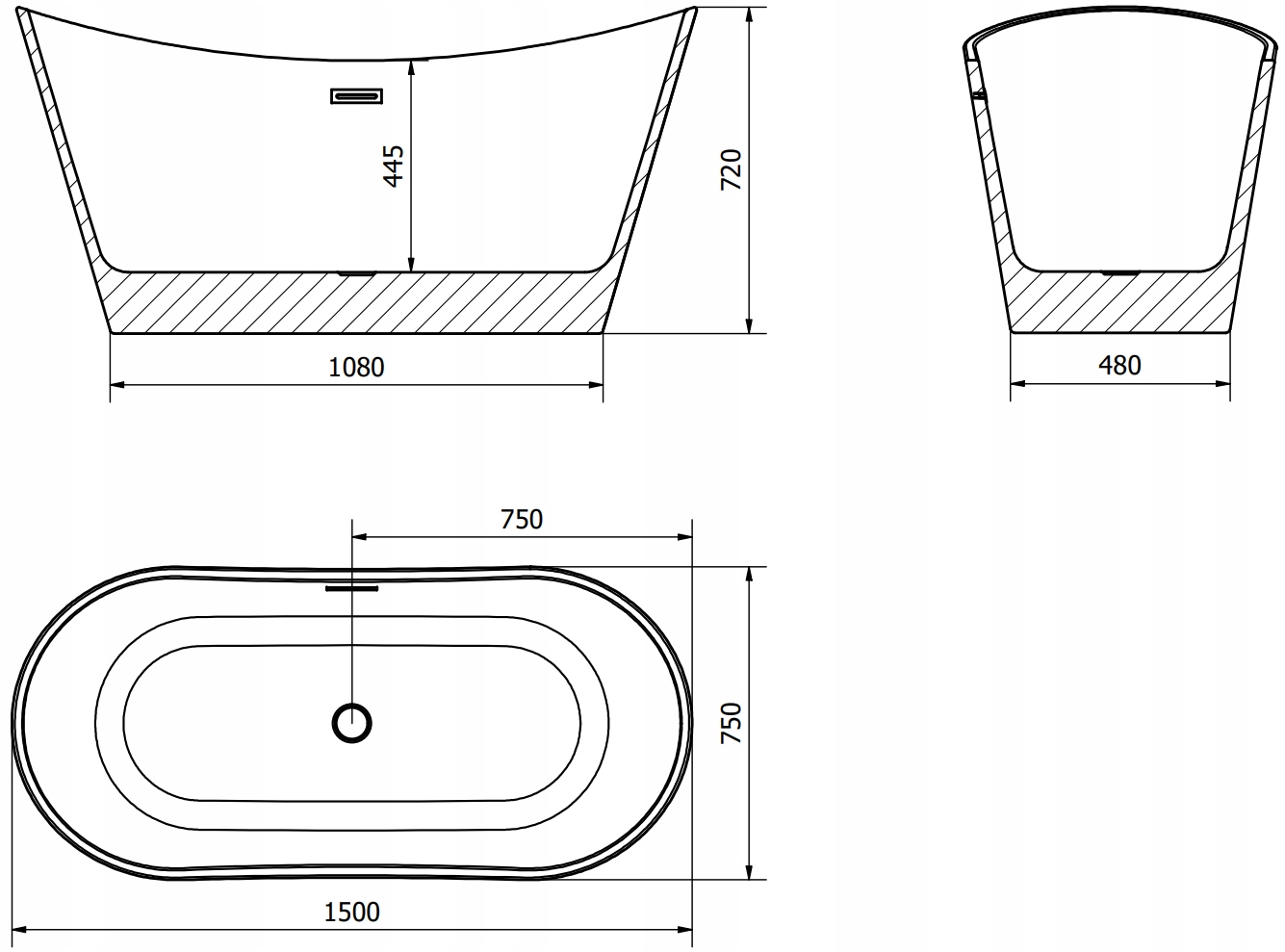 ВАННА MONTANA Окремо стояча 150 х 75 + СИФОН, ХРОМ II КОР.