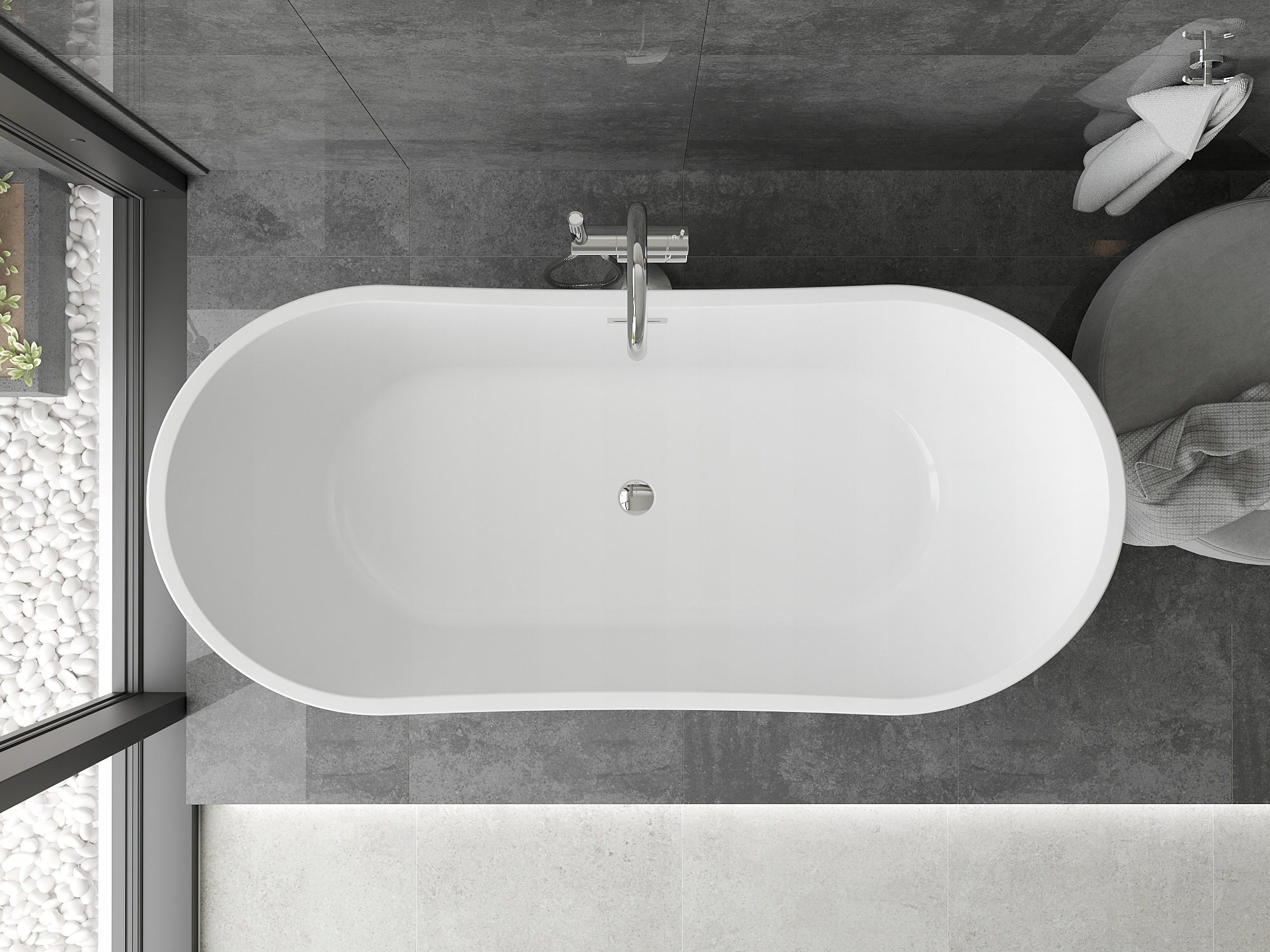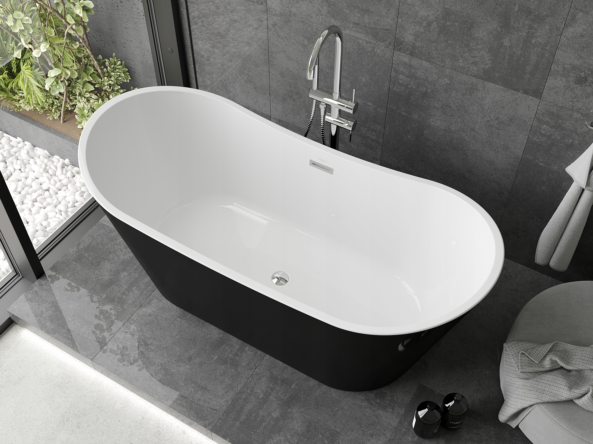 Отдельностоящая ванна Mexen Montana 170 x 80 см 2-й сорт, белый/черный, хромированный перелив