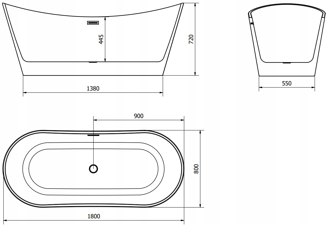 ВАННА MONTANA Окремо стояча 180 х 80 ЧОРНА + ЧОРНИЙ СИФОН 2 сорт.