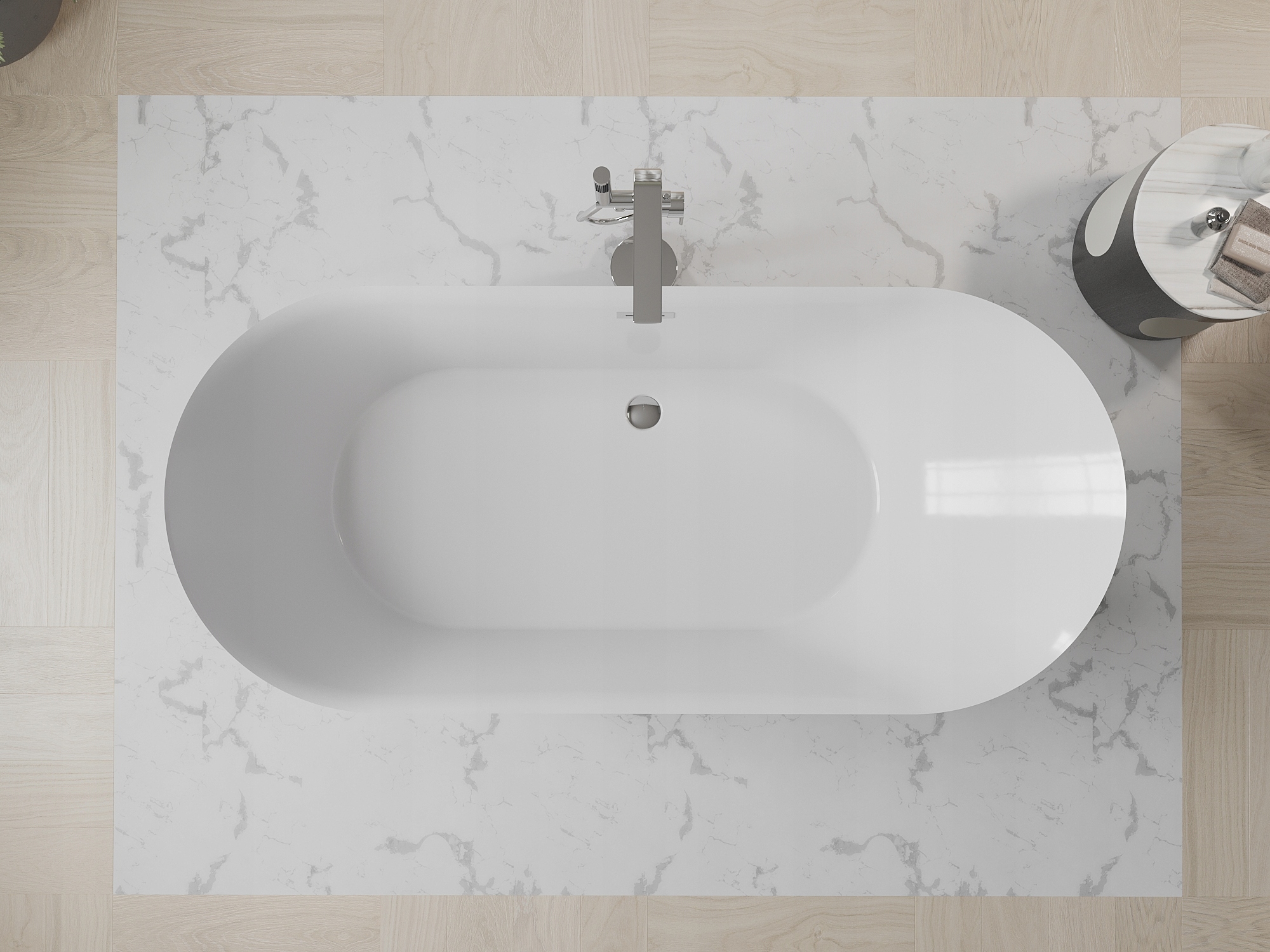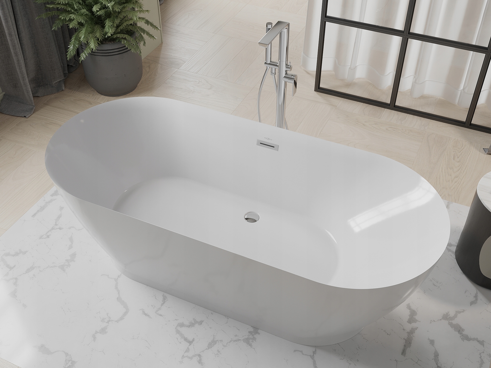 Отдельностоящая ванна Mexen Roxy 180 x 85 см 2-го сорта, белая, хромированный перелив