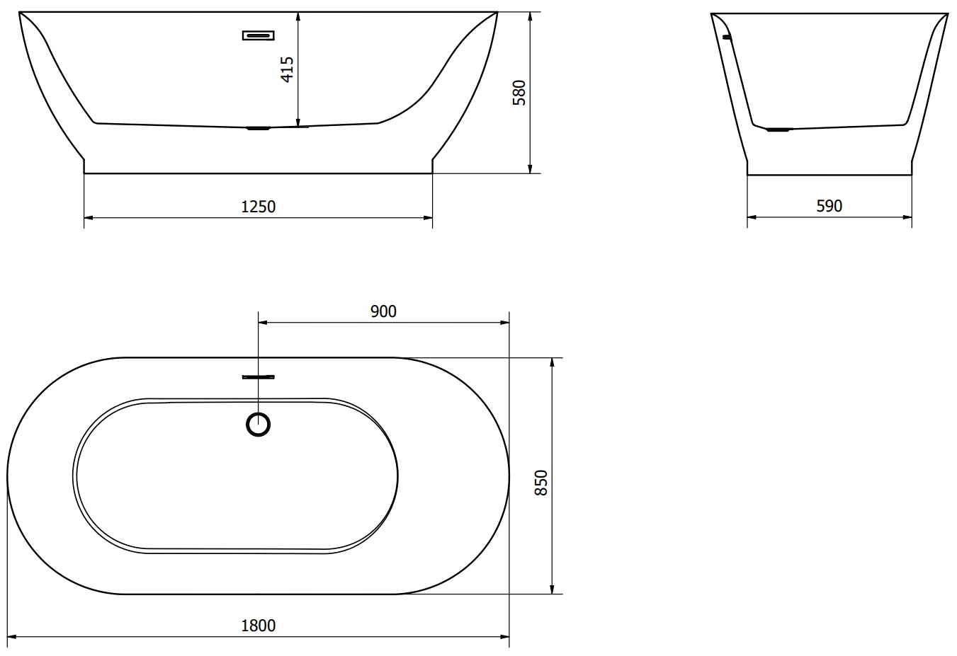 ВАННА ROXY Окремо стояча 180 х 85 + СИФОН, ХРОМ II КОР.