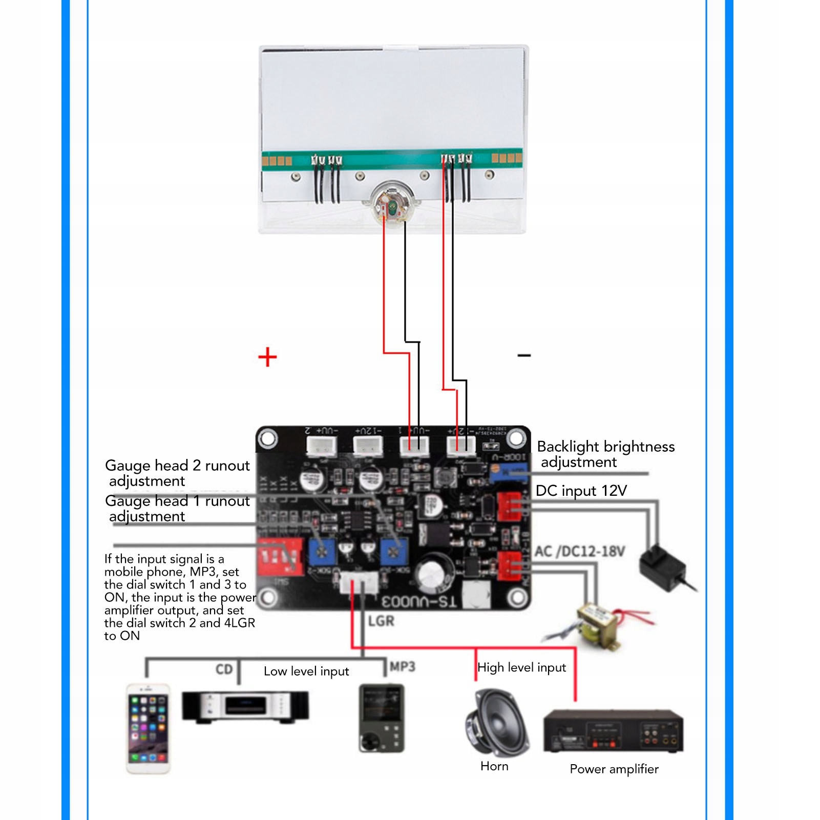 VU светодиодный счетчик белый подсветка точное измерение усилителя мощности штаба