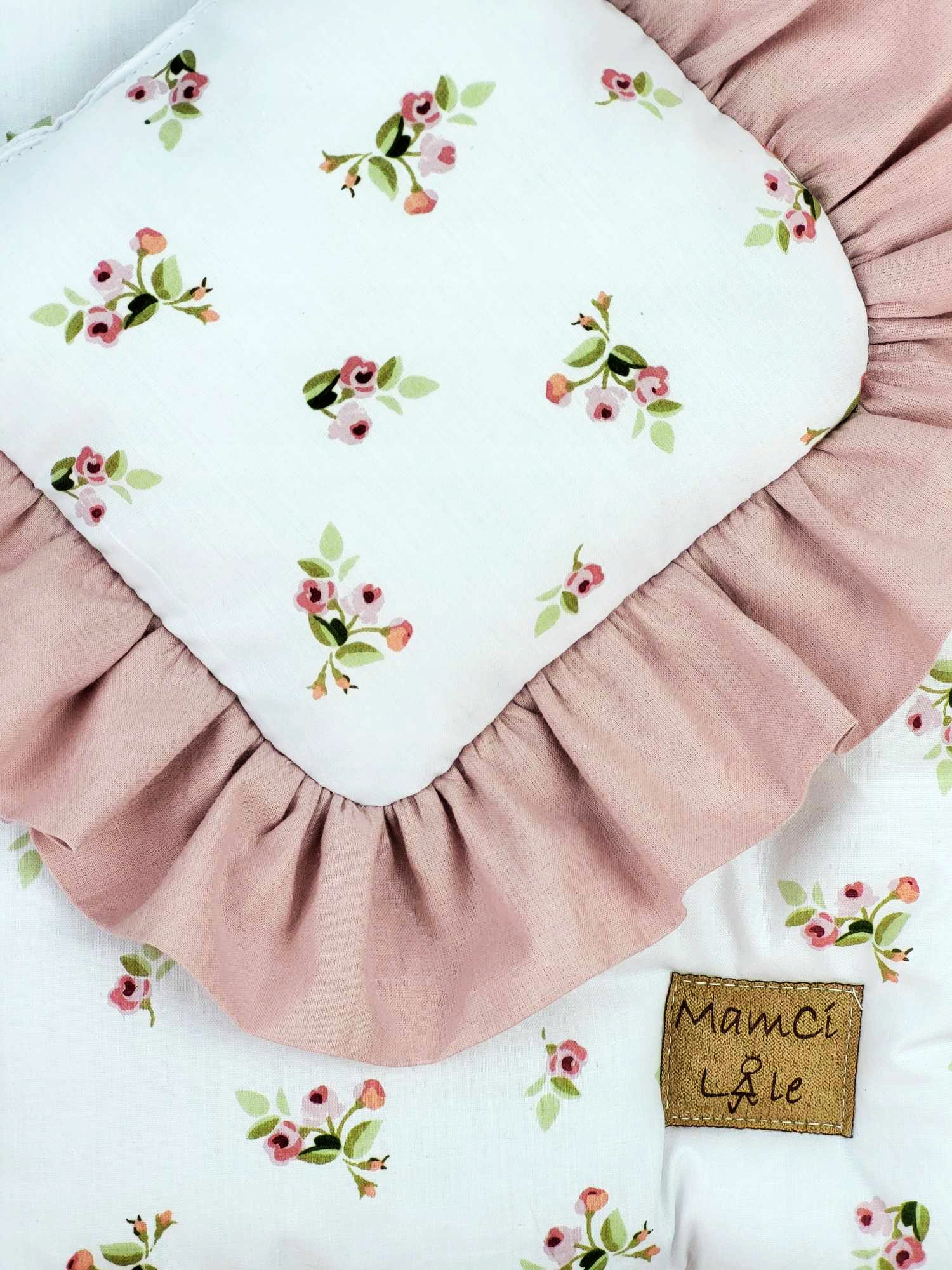 Облицована красивой тканью ручной работыПостельное белье из хлопка/муслина. Одеяло дополнено кисточкой, а подушка – нежной рюшей. В комплект также входит матрас. Идеально подойдет в качестве игрушки для девочек от 2 лет.