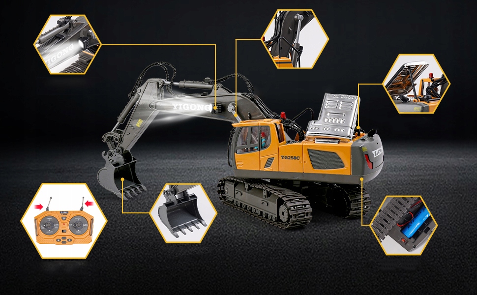 - Наш игрушечный экскаватор имеет реалистичные мигающие огни и звуки двигателя, что гарантирует действительно привыкающее веселье (свет и музыку могут быть включены или выключены в любое время) .