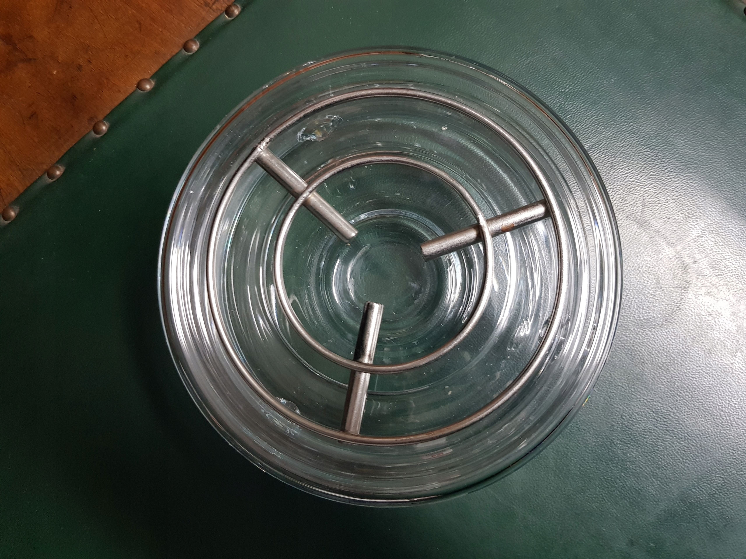 Высота около 8 см, диаметр около 19 см, диаметр металлической части 14 см.