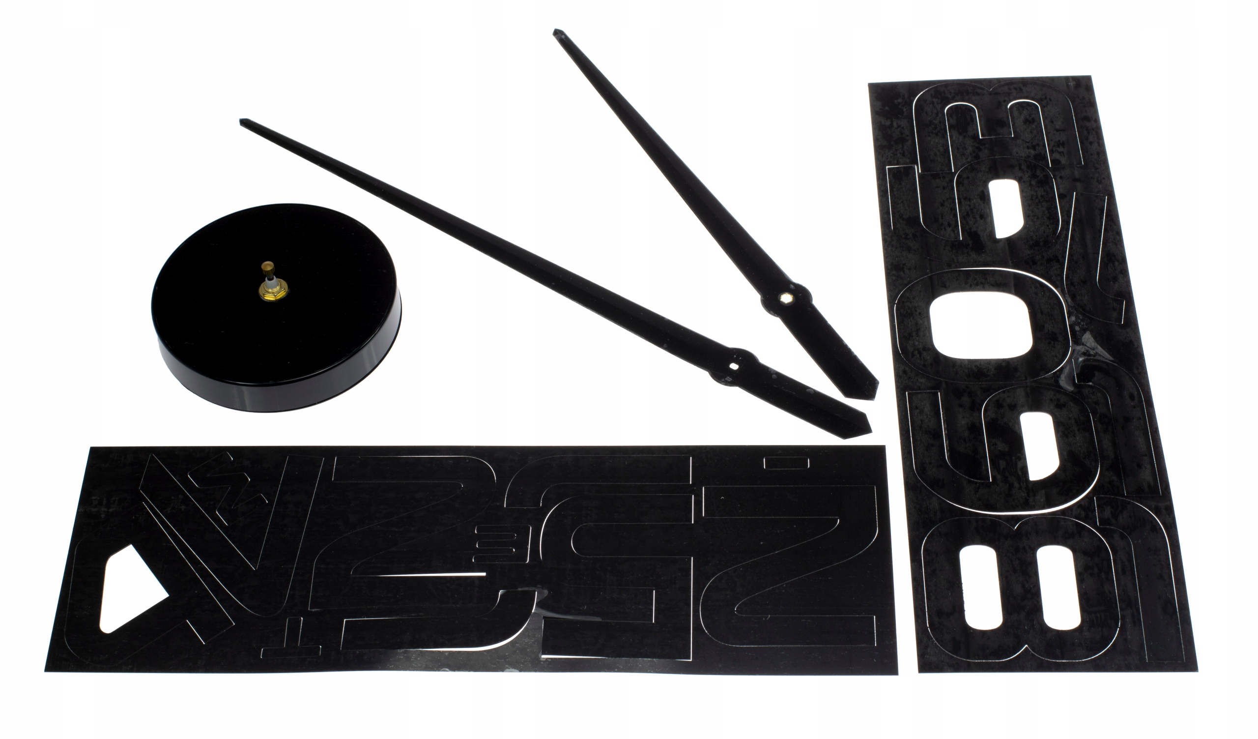 - Элементы часов крепятся с помощью саморезов. самоклеющаяся пленка. Лента находится с обратной стороны каждого элемента.