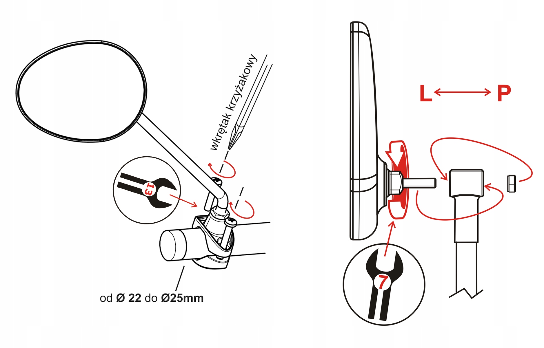 - возможность установки на рули с наружным диаметром От 22 до 25 мм.