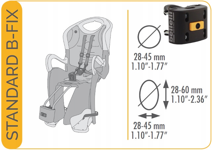 - Возможная установка в базовые трубы с круглым поперечным сечением и диаметром 28-45 мм, а также к раме с овальным поперечным сечением и диаметром 28-45 мм/28-60 мм