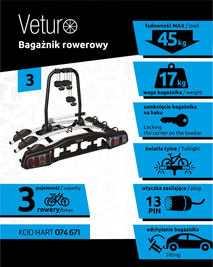 - Максимальная нагрузка платформы составляет 45 кг , что позволяет транспортировать еще более тяжелые велосипеды