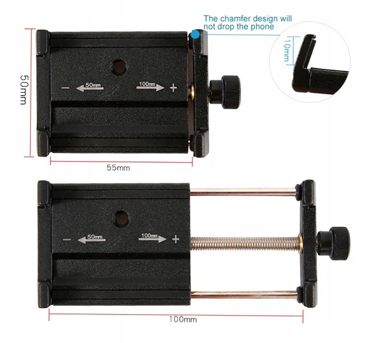 Телефон можно располагать как в вертикальном, так и в горизонтальном положении. Адаптирован под телефоны шириной от 55 мм до 100 мм.