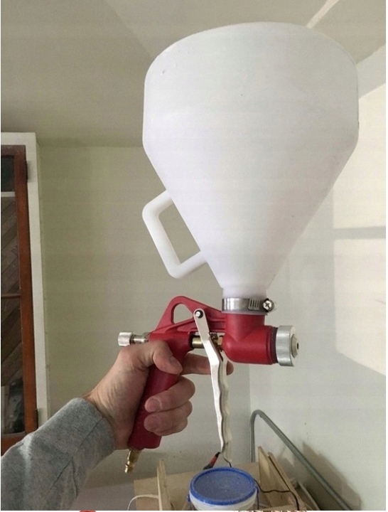 Универсальный пневматический пистолет для малярных, штукатурных и штукатурных работ. Это версия пистолета, оснащенная шаровым краном (на быстроразъемном соединении), который позволяет полностью перекрыть доступ воздуха во время процесса покраски или штукатурки. Пистолет предназначен для окраски эмульсионными красками, клеевыми красками, для побелки известью, а также для нанесения акриловых штукатурок на утеплитель. Идеально подходит для нанесения штукатурок, гипсовых штукатурок, с его помощью можно создавать фактуры, т. е. так называемый «барашек» на стене. Контейнер с пистолетом наполовину закрыт, что позволяет красить потолки без использования каких-либо дополнительных колен, крышек и т.п. растворов. Пистолет полностью изготовлен из алюминия, поэтому он легкий и удобный в использовании, легко чистится и долговечен. Благодаря установленному шаровому крану пистолет может работать с небольшими компрессорами (возможно отключение воздуха).