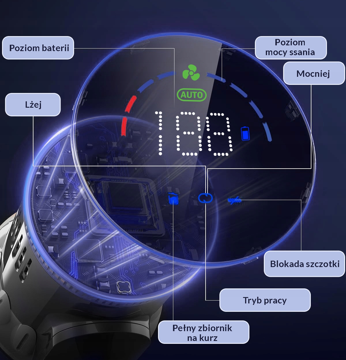 Благодаря улучшенной системе светодиодных отражателей основная щетка освещает пол, эффективно обнаруживая даже мельчайшие частицы пыли, невидимые невооруженным глазом.
