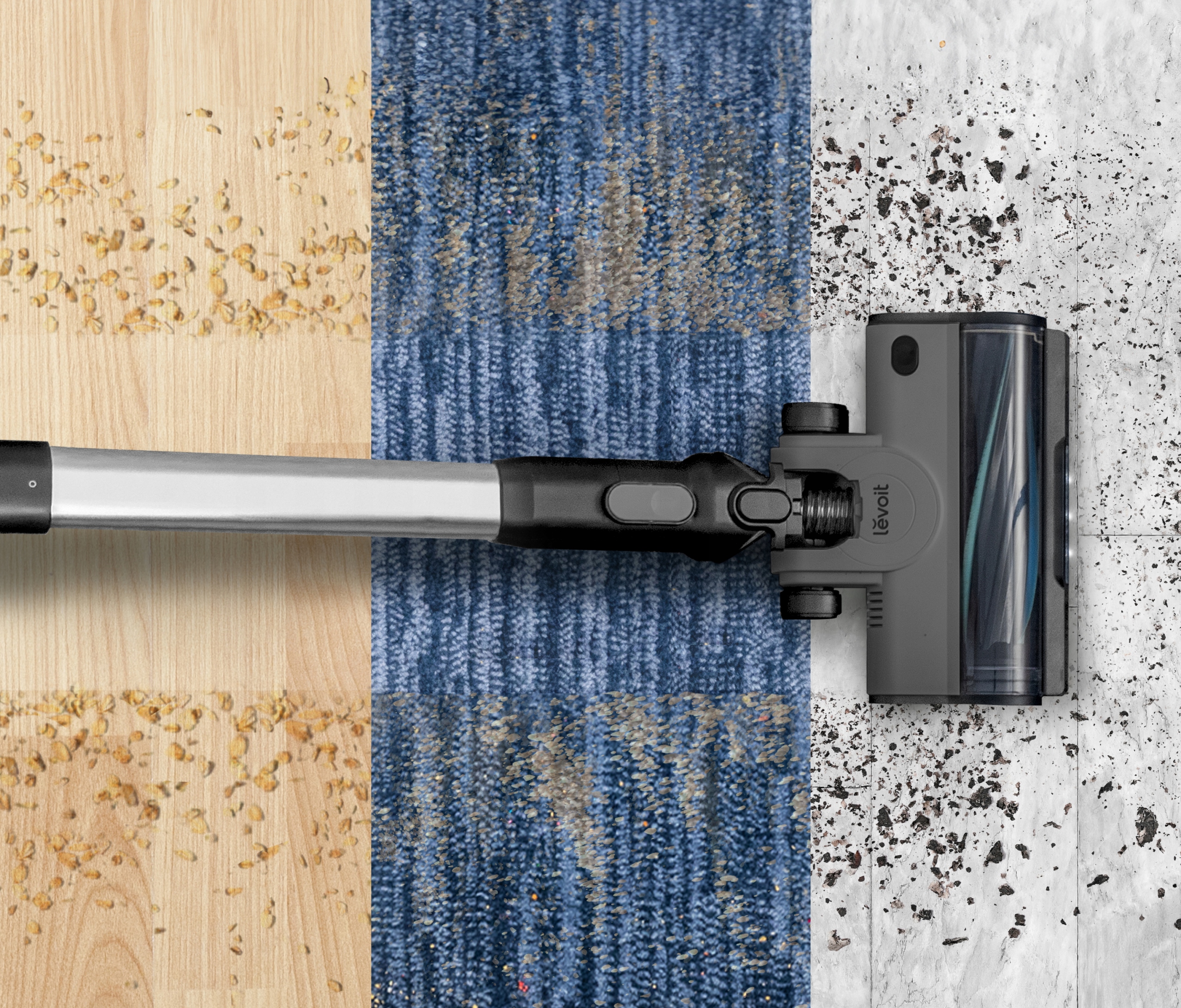 Levoit LVAC-200 оснащен усовершенствованной электрощеткой, которая благодаря своему приводу эффективно собирает все загрязнения, в том числе волосы и мех, даже со сложных поверхностей. Специально разработанная щетка, сочетающая резиновые и тканевые полоски, предотвращает спутывание волос, а значит, они попадают прямо в пылесборник и не остаются на щетке.