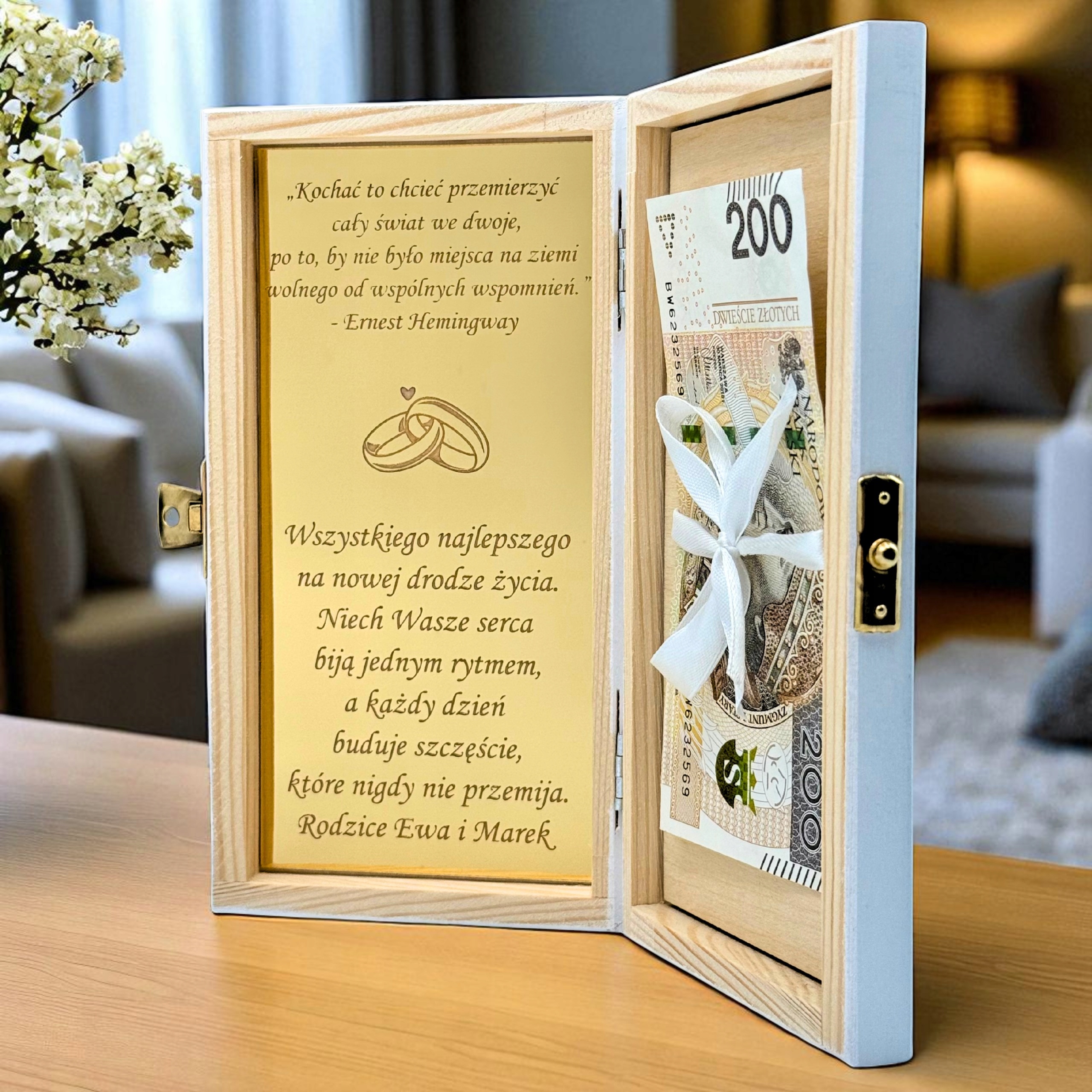 Свадебная подарочная коробка для сувенира денег с гравировкой персонализации