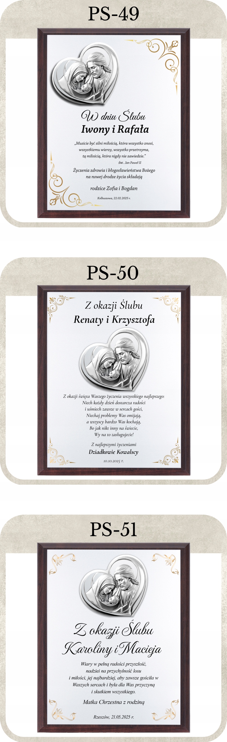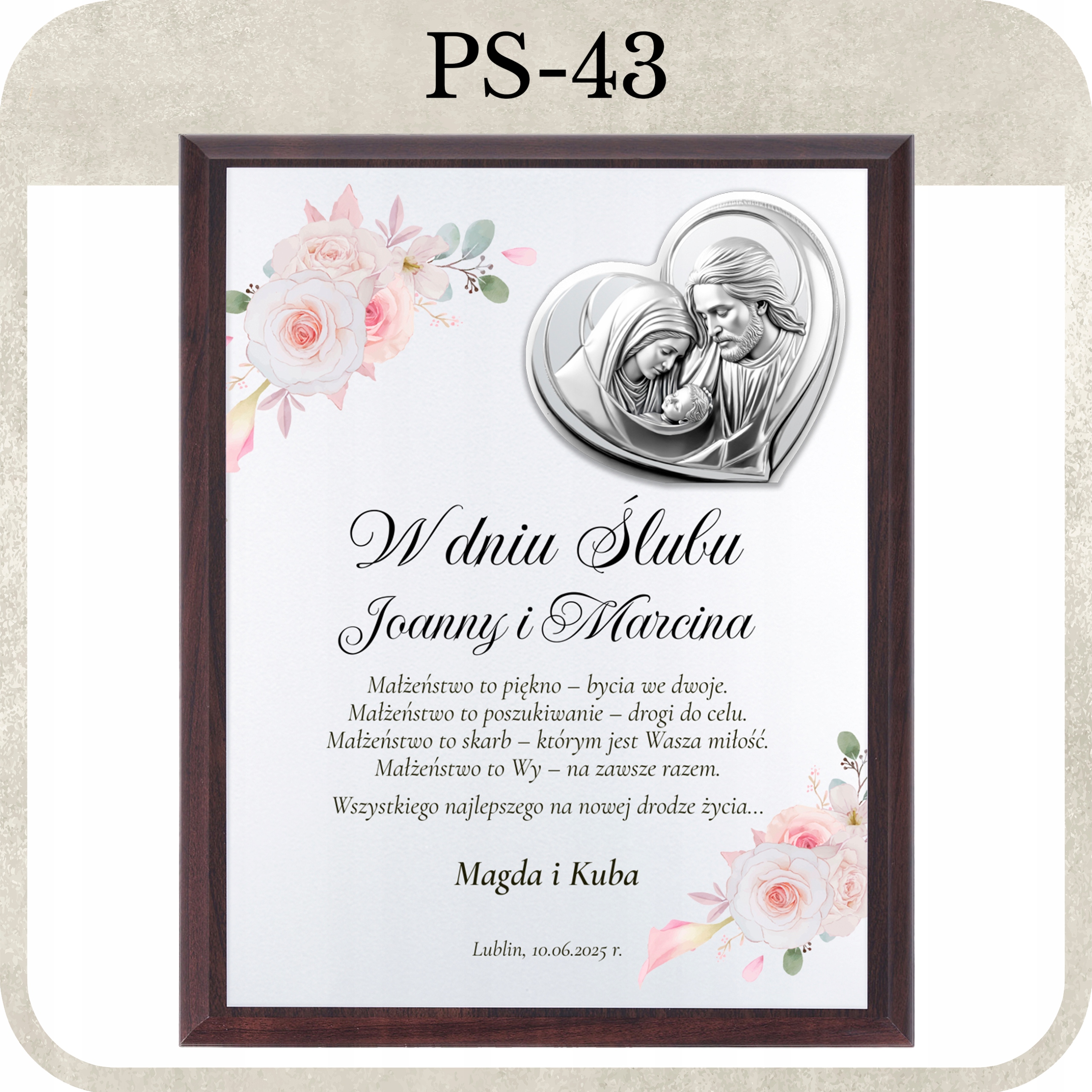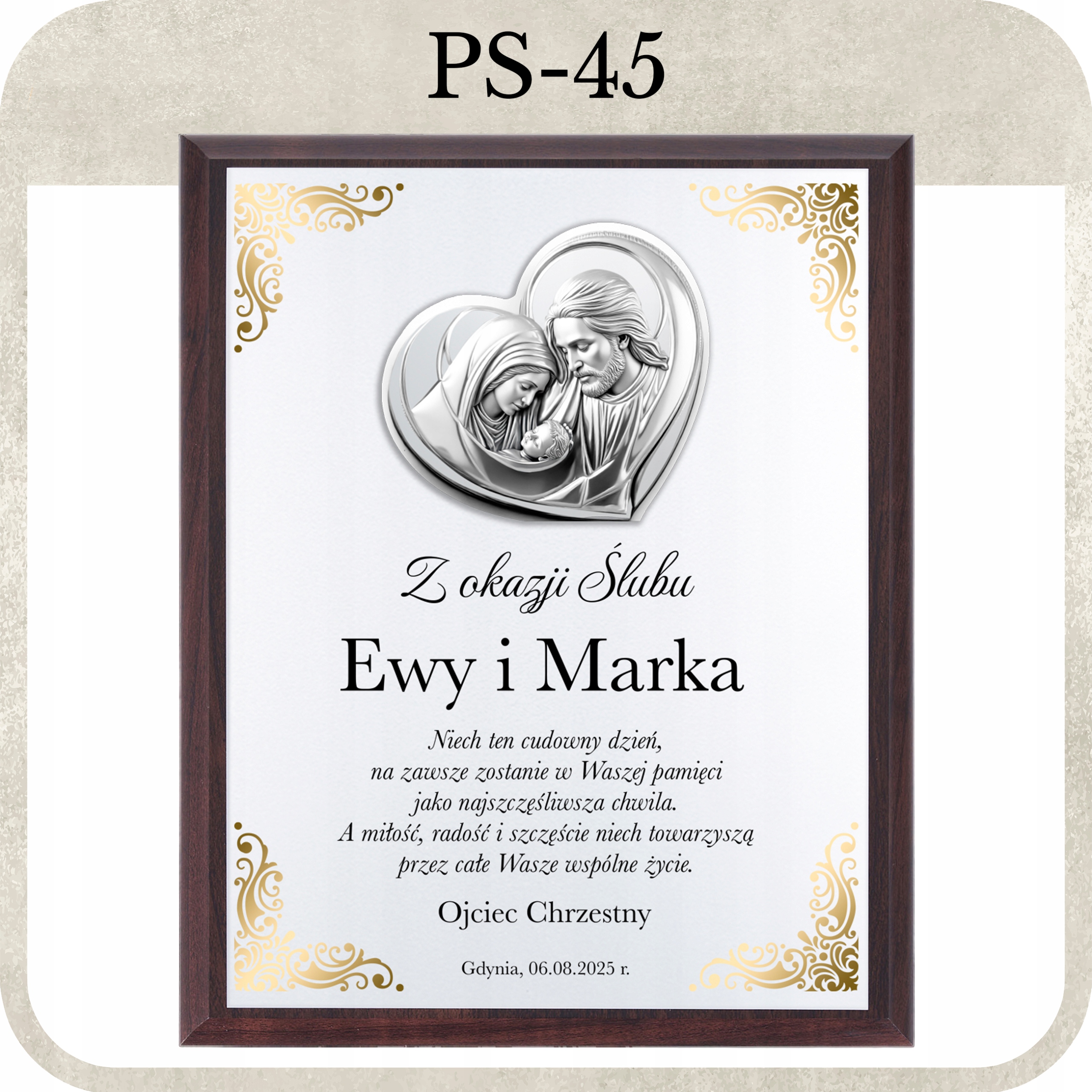 Элегантная серебряная панель с гравировкой - уникальный подарок для жениха и невесты . Сделанная на деревянной панели MDF , украшенной оригинальной картиной с изображением святого семейства, с зеркальным эффектом , будет прекрасным сувениром в течение многих лет. Персонализированная самоотверженность на алюминиевом лотка для выпечки делает подарок еще более личным характером.