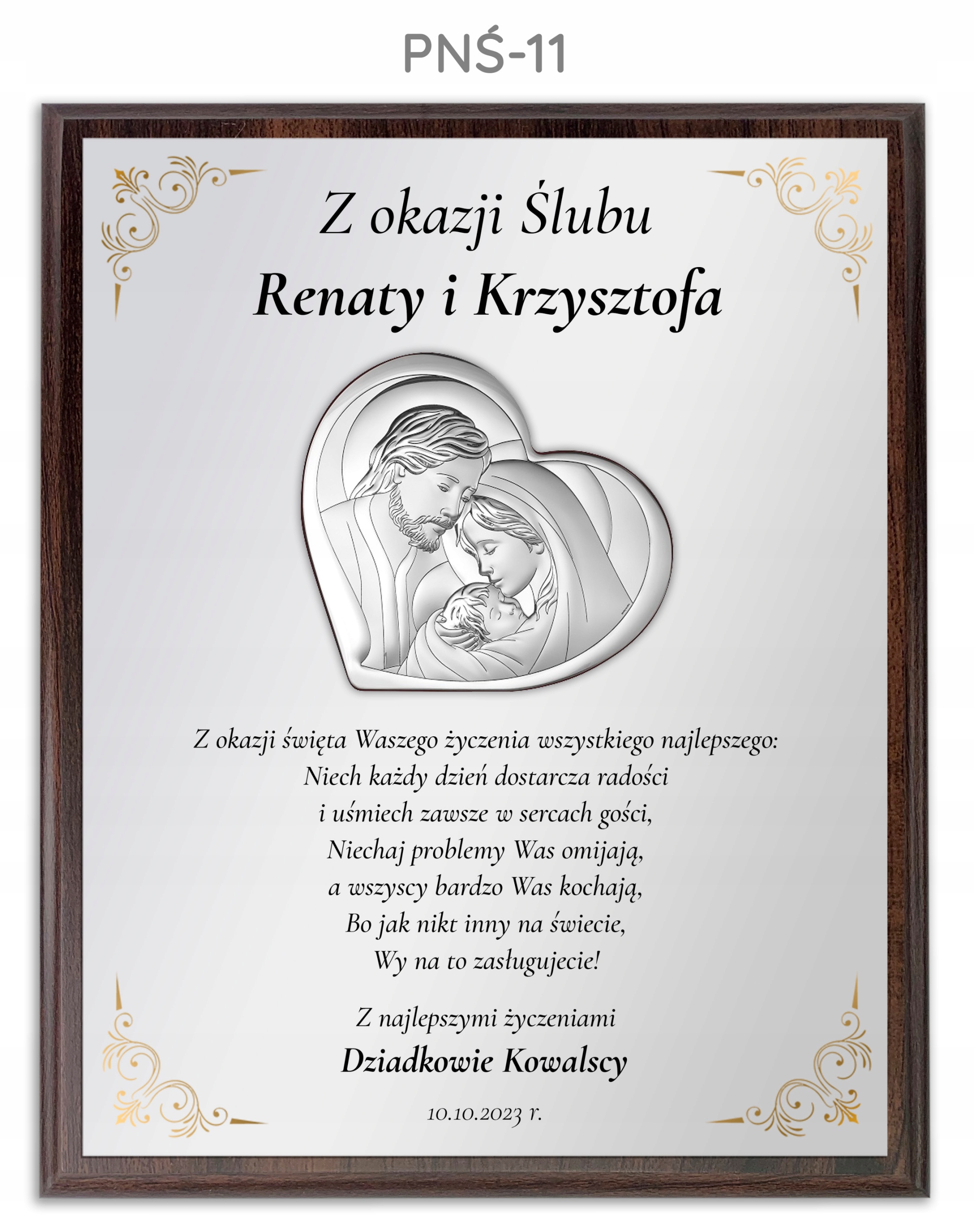 ✅ Введите: Имена молодоженов, От кого подарок, Дата