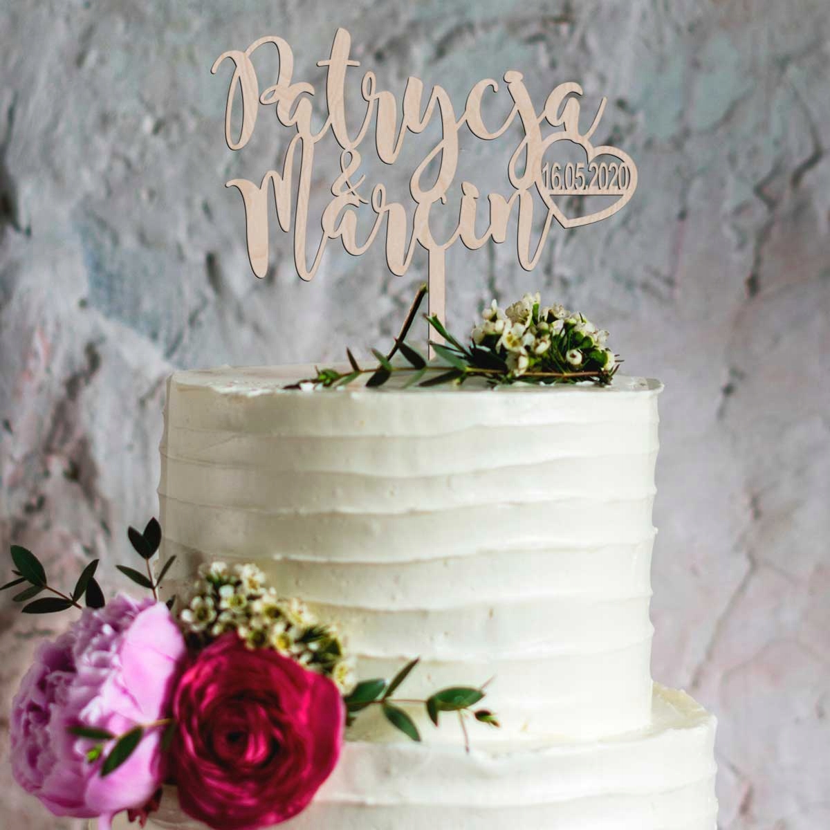 Топпер для свадебного торта - Имена + дата в сердце