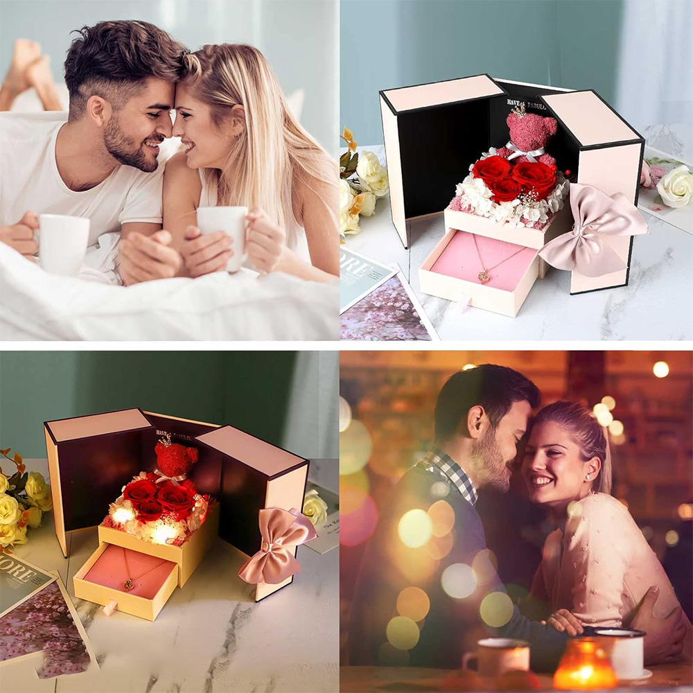 Ручная работа, настоящий настоящий цветок розы доставляется в красивой подарочной коробке, готовой к передаче без необходимости переадресации. Ящик скрывает соответствующее ожерелье и сделает человека, который открывает подарок двойным удивленным и более романтичным. Независимо от того, ищете ли вы вдумчивый рождественский подарок или просто хотите сказать «Я люблю тебя», сохранившиеся розы в коробке, безусловно, заставит его чувствовать любовь и ценить