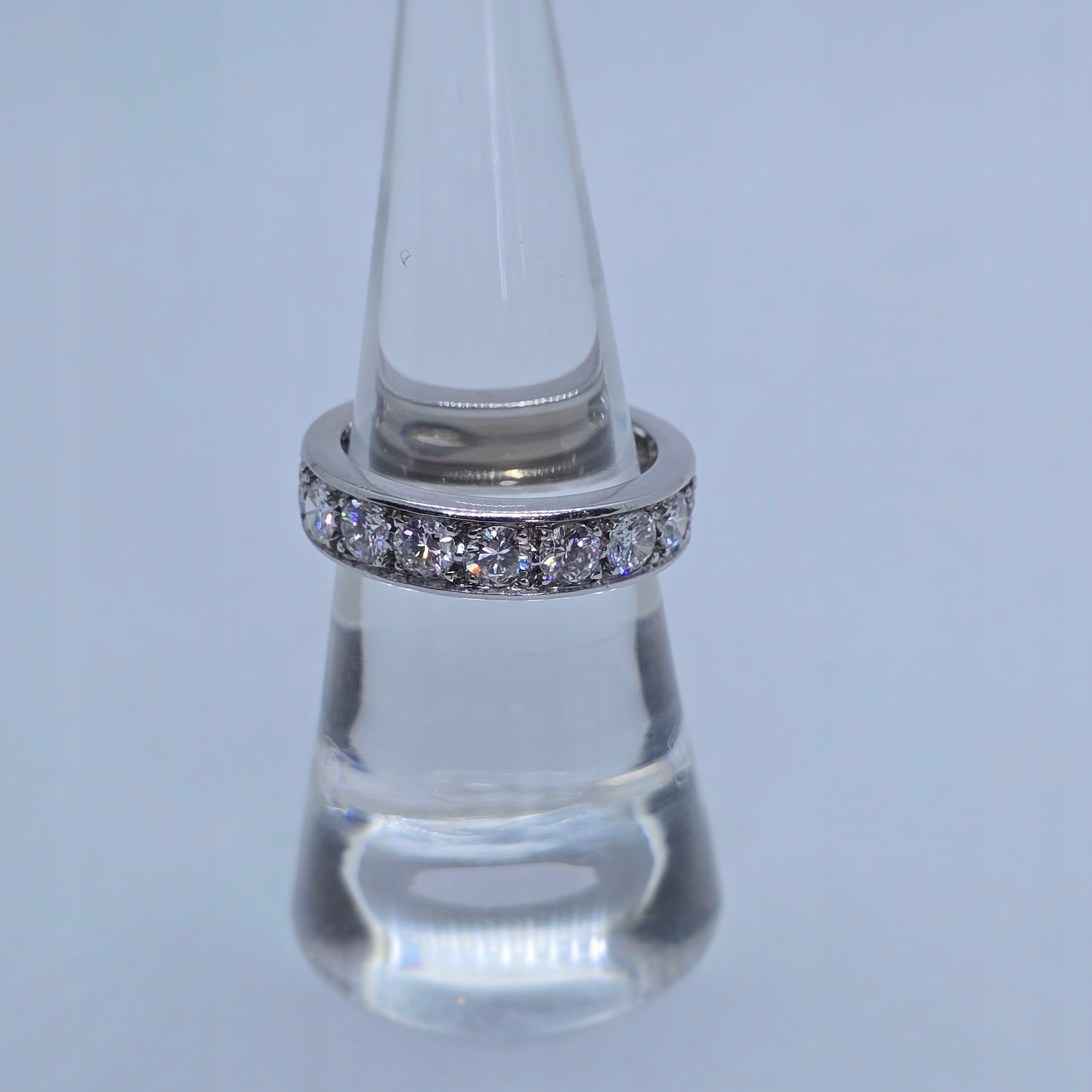 На нашем кольце у нас есть 17 алмазов в бриллиантовом разрезе с общим весом 3,40 градусов. Цвет G и чистота против испытания белого золота 18 к.