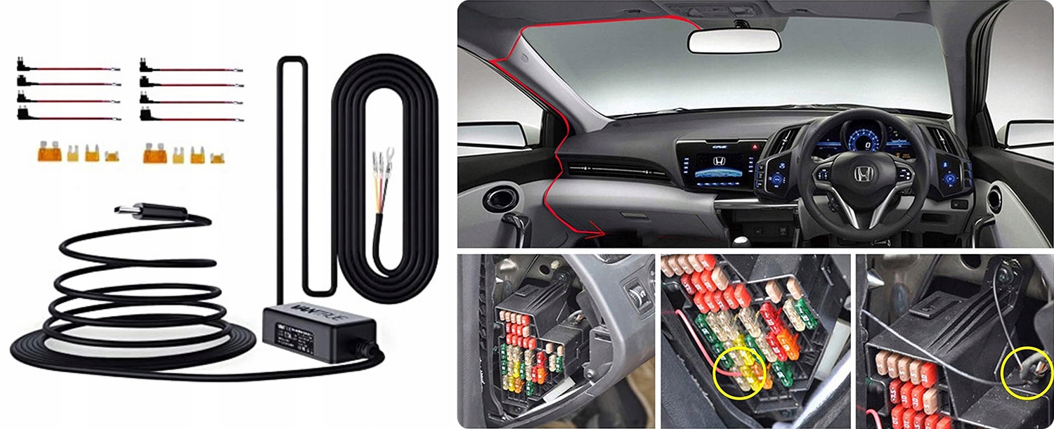 - Адаптер питания для режима парковки в наборе для предохранителей - Фиксированный источник питания камеры 24/7