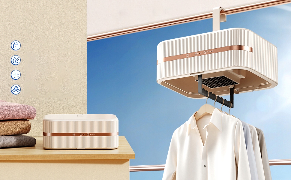- Домашняя мини-термосушилка специально разработана для дождливой погоды, дождливых дней и сезонов. Его также можно использовать для ежедневной сушки и стерилизации одежды. Он способен эффективно решать проблемы с влажностью и является незаменимым помощником в улучшении качества жизни!