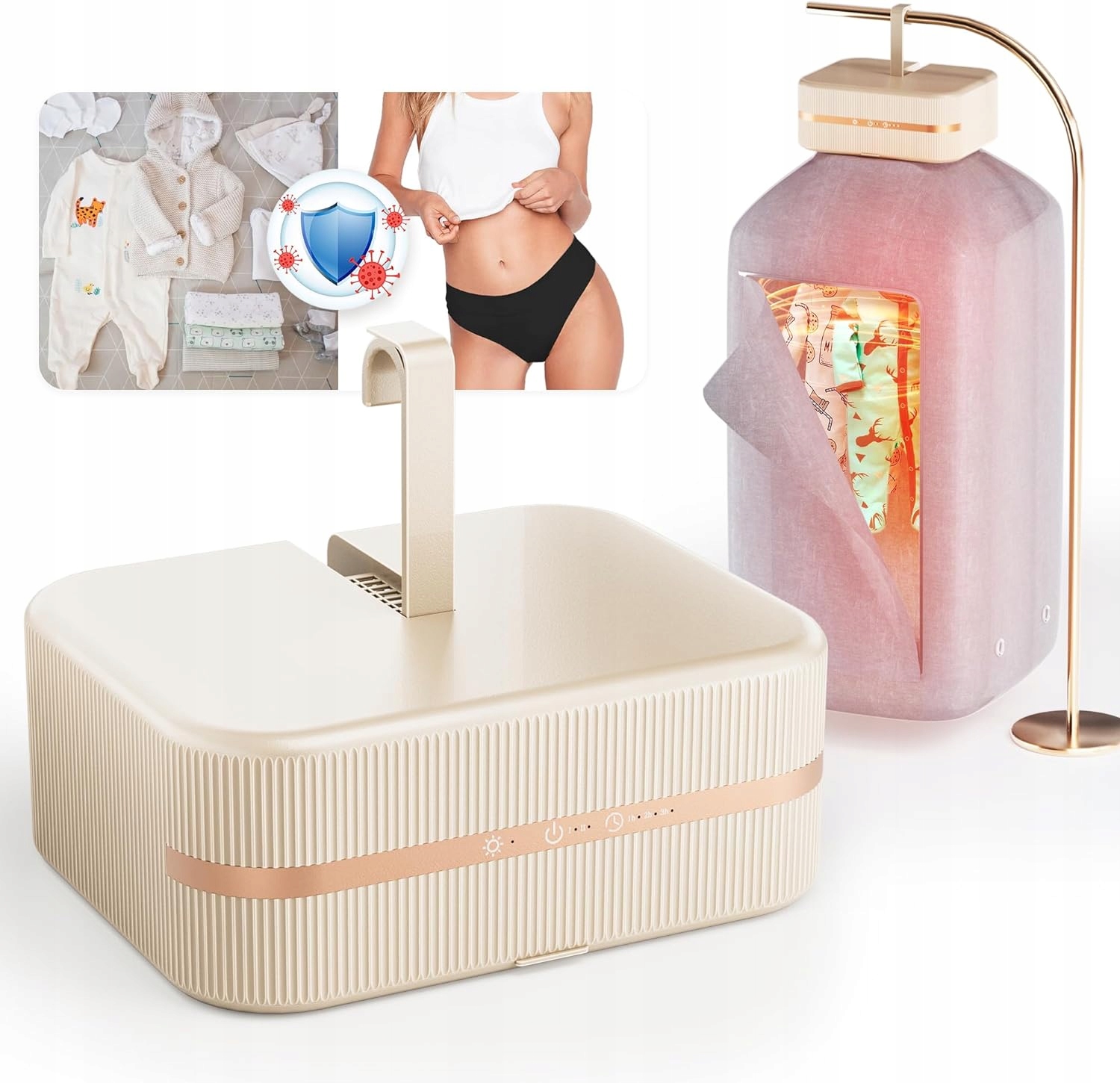 - Пастеризация проникает равномерно и быстро. Высокотемпературное тепло равномерно и быстро проникает в одежду через два вентиляционных отверстия. Эффект стерилизации сильнее, чем прямой солнечный свет.