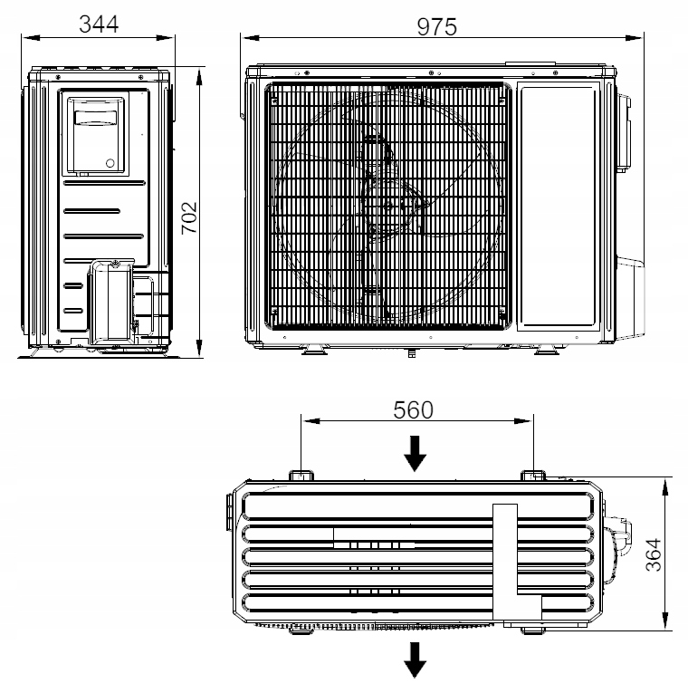 - Наружный модуль. с хладагентом R32, трубопроводы хладагента длиной до 10 м, бесшумный компрессор с инверторным управлением и электронный расширительный клапан.