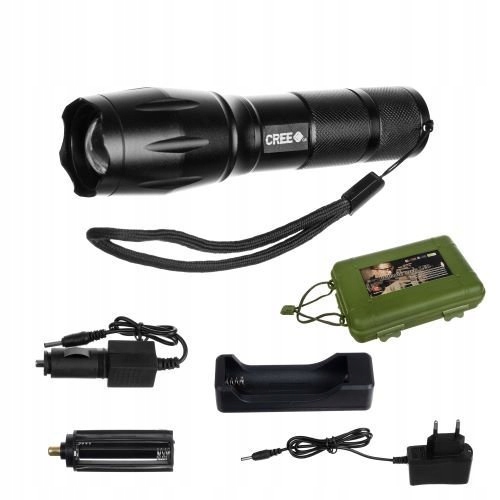 включает не только сам тактический фонарик, но и дополнительные аксессуары, благодаря которому представленный светодиодный фонарик будет надежным в любой ситуации. , например, Два зарядных устройства - сеть и автомобиль, поэтому окончательная батарея больше не будет проблемой.