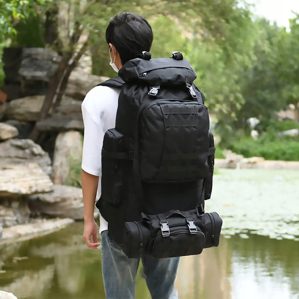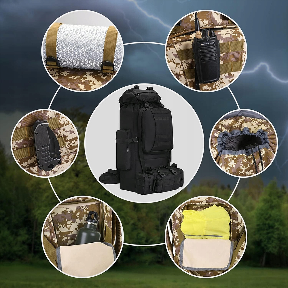 ✔ 【Туристический рюкзак и подвздошная сумка】 Этот водонепроницаемый и легкий туристический рюкзак не будет загружен во время путешествия. Военная тактическая сумка подходит для кемпинга, походов, охоты, кемпинга и альпинизма. Может заменить чемодан.