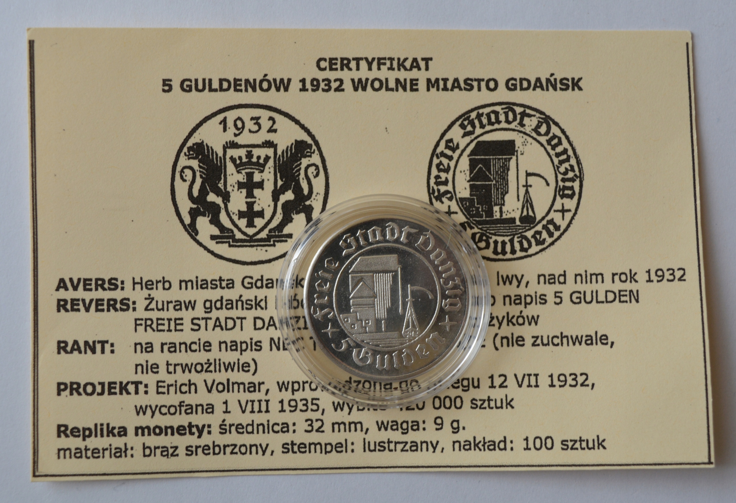 Бесплатный город Гданьск 5 Guldenów 1932 Копия
