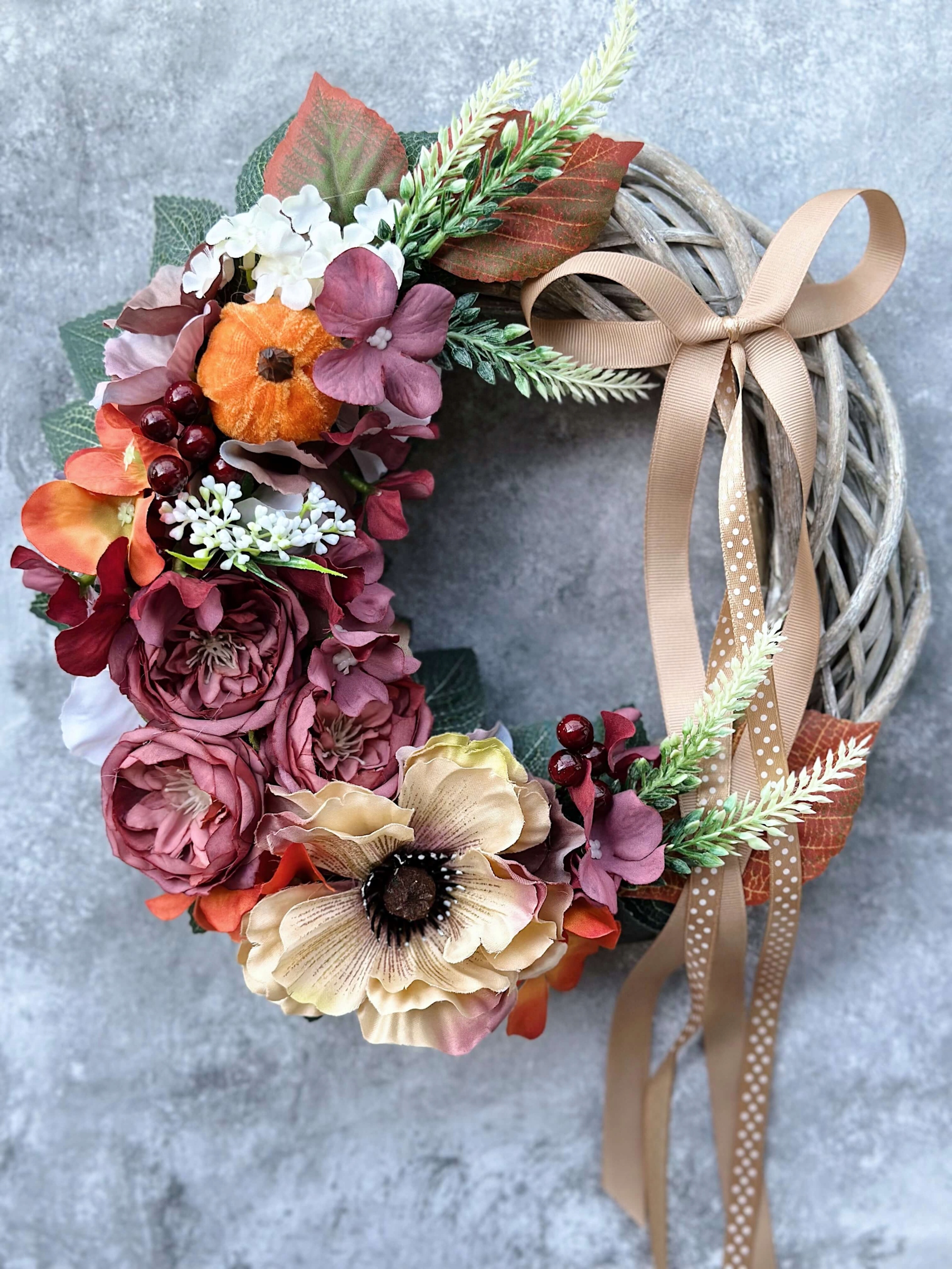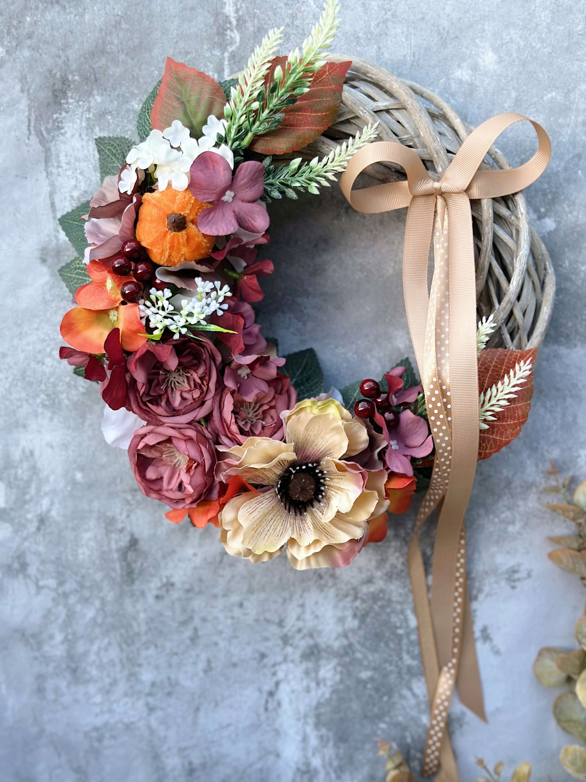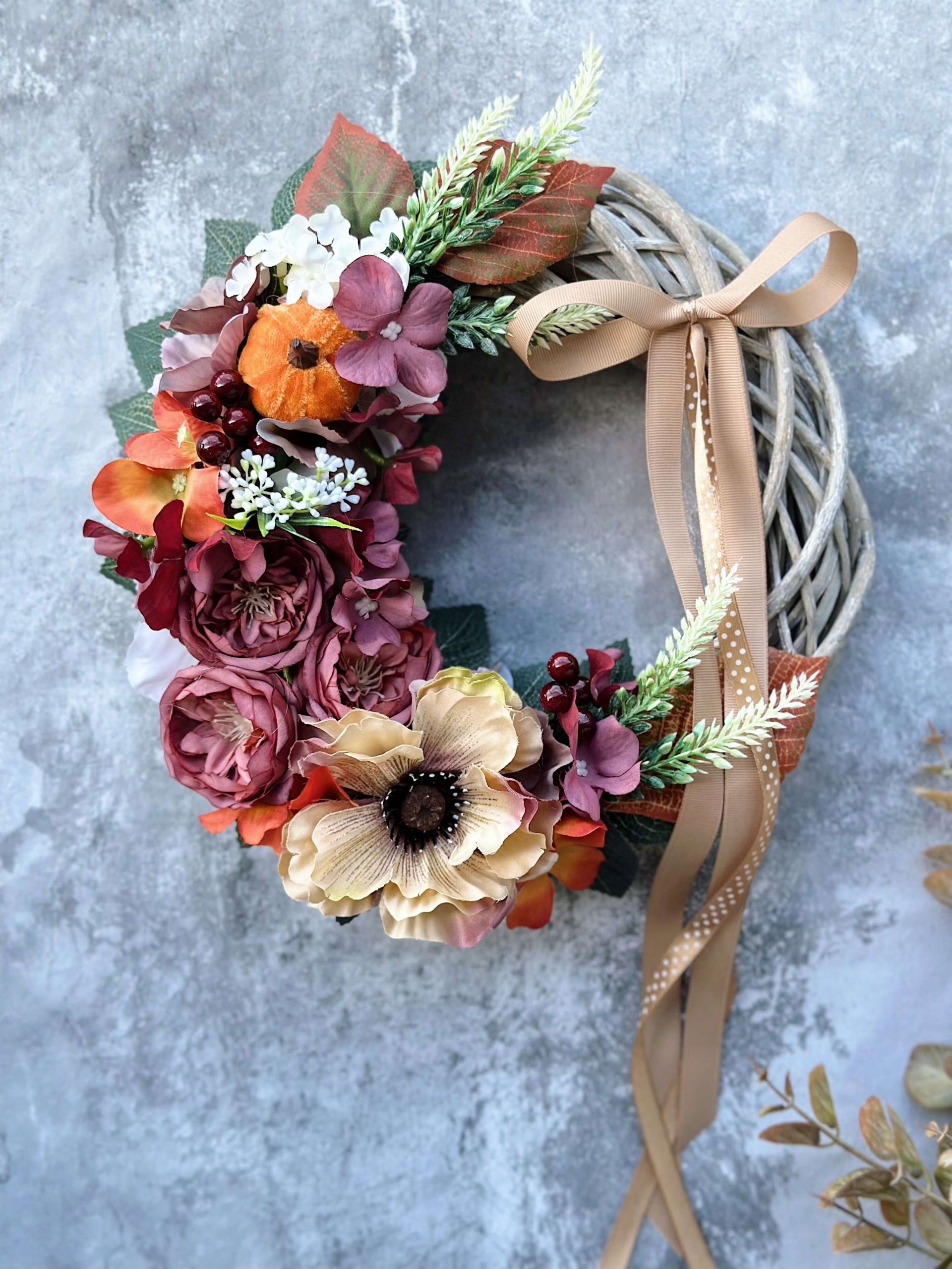 Осенний венок для цветочного плетеного венок из венок из тыквы бургундский головной убор