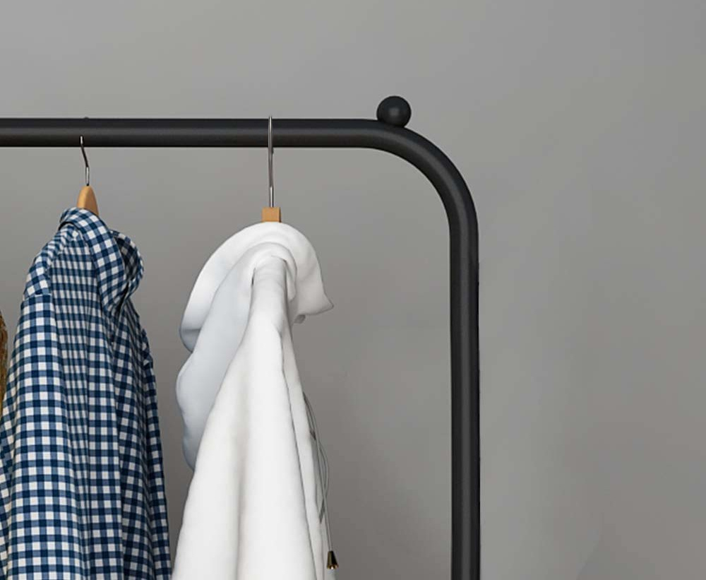 Наслаждайтесь многочисленными преимуществами нашей стоячей вешалки, которая обеспечивает быстрый доступ к развешенной одежде, занимая при этом мало места.