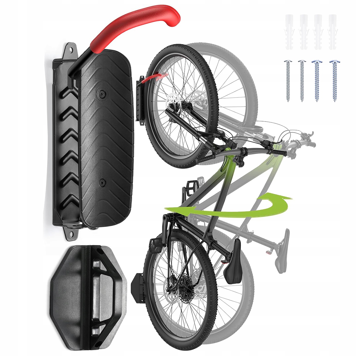 【Простота сборки】Для гаражных стоек для велосипедов доступны подробные пошаговые инструкции и дополнительные монтажные аксессуары. Поворотные крепления для велосипедов оснащены крепежными винтами для бетонных, каменных или каркасных стен. Советы: Крепление для велосипедов следует устанавливать только на прочные опоры, балки, каменную кладку или бетонные стены. Не устанавливайте на консольную стену (например, стену из гипсокартона), если за ней нет прочной деревянной стойки.