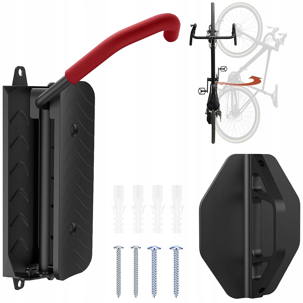 Поворотное настенное крепление для велосипеда, вертикальная стойка для велосипедов для гаража, настенные крепления для горных велосипедов, стойка для велосипедов для гаража, выдерживает до 66 фунтов (черный/красный)