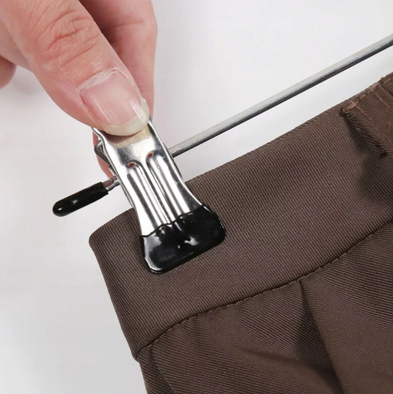 Клипы регулируются на разные ширины, что дает вам возможность размещать одежду разных размеров.