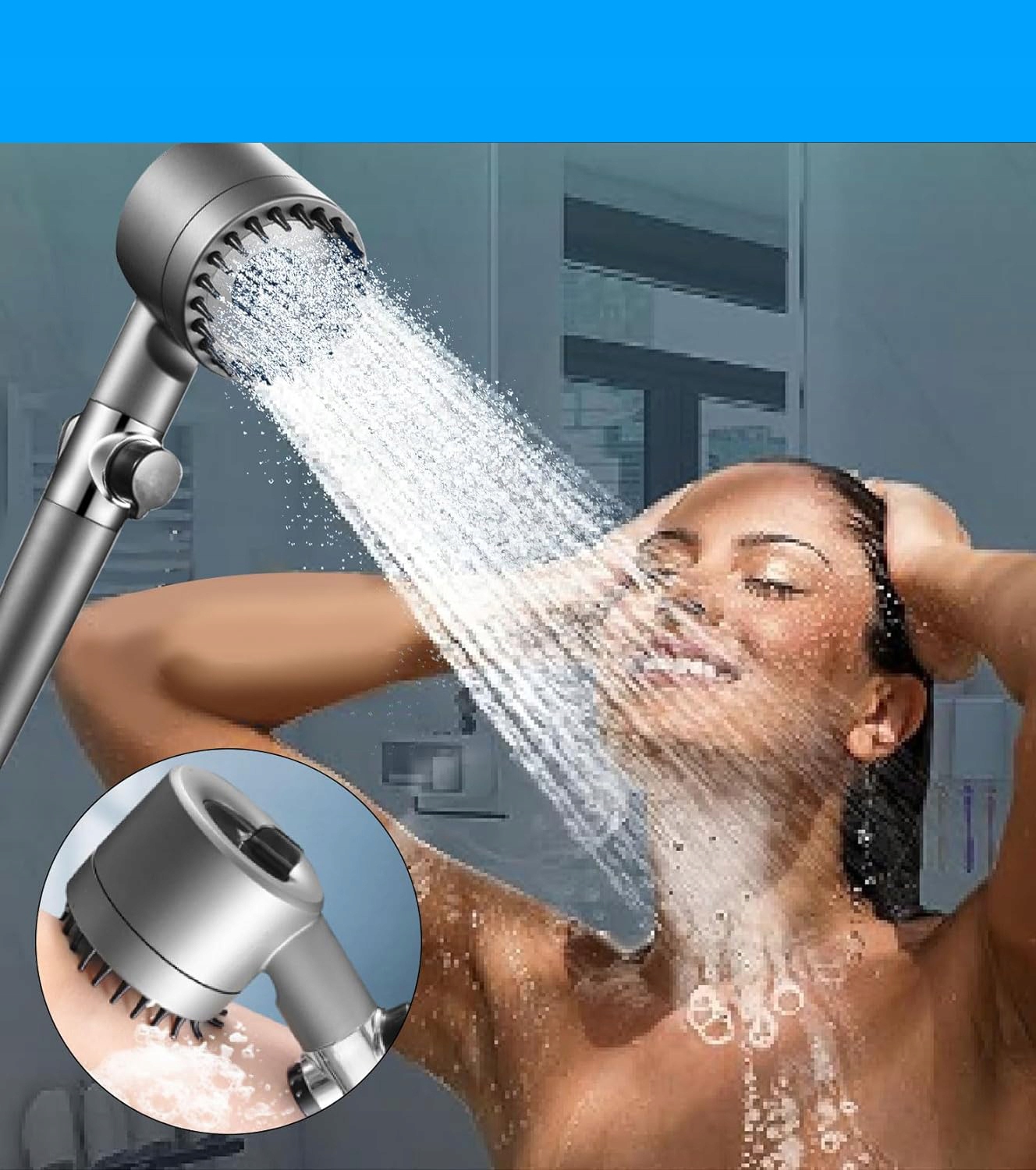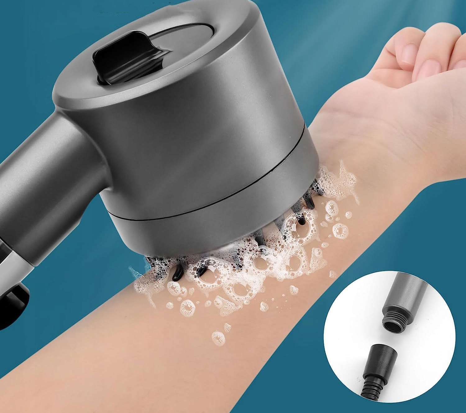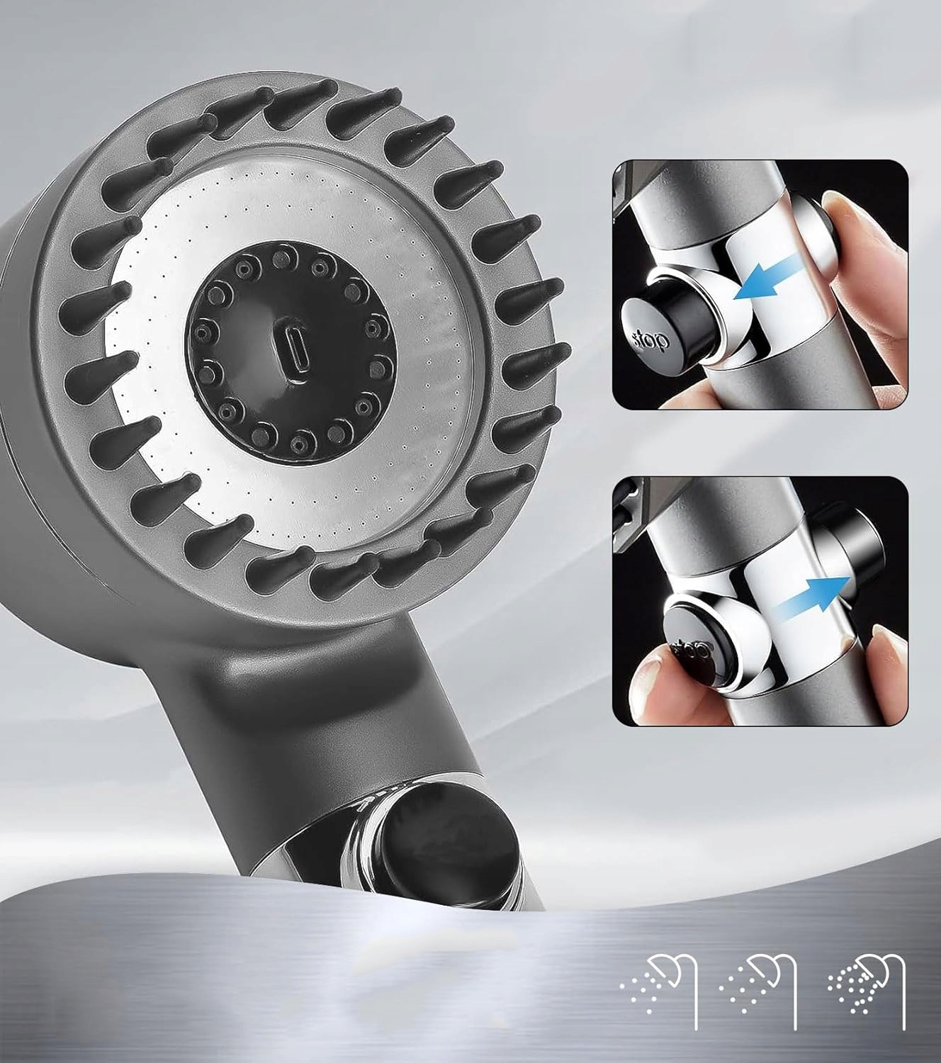 🚿🚿, оснащенный силиконовым массажером: последняя головка для душа кожи головы, массажная головка для душа оснащена мягкой силиконовой кистью, которая улучшает кровообращение, снимает усталость головы и поддерживает рост волос. Всаждающая насадка для душа проста не нужно установить без необходимости в сантехнике и подходит для большинства змей и ручек для душа или крепления для душа.