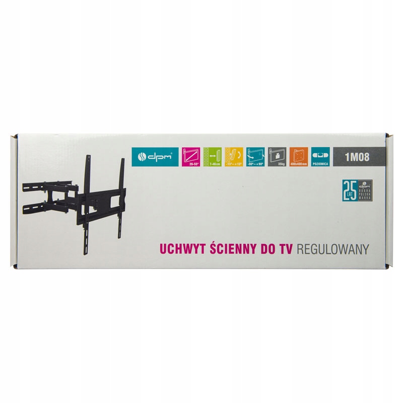 Регулируемый телевизор DPM 1M08 для 26-55 "экранов. Расстояние от стены: 7-46 см. Оценка и регулировка вращения. Макс. Нагрузка: 35 кг. VESA: 400 x 400 мм. Монтажные аксессуары в наборе. Упаковка: Lipe