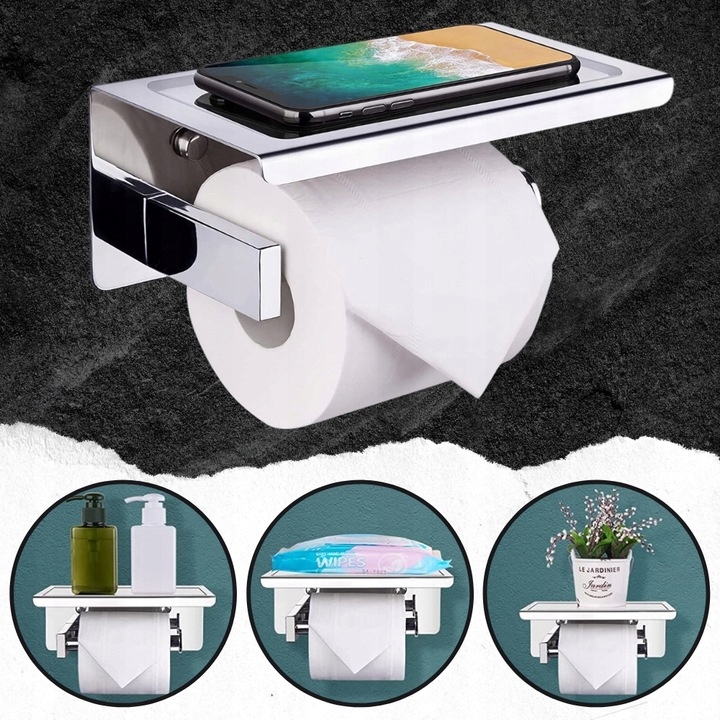 Откройте держатель туалетной бумаги от полки до телефона и других маленьких предметов в ванной комнате. Это сделает необходимые вещи, которые всегда будут у вас в руках. не занимает много места и объединяет две функции. изготовлен из серебряной порошковой окрашенной из нержавеющей стали. Установка с прикрепленными винтами и колышками
