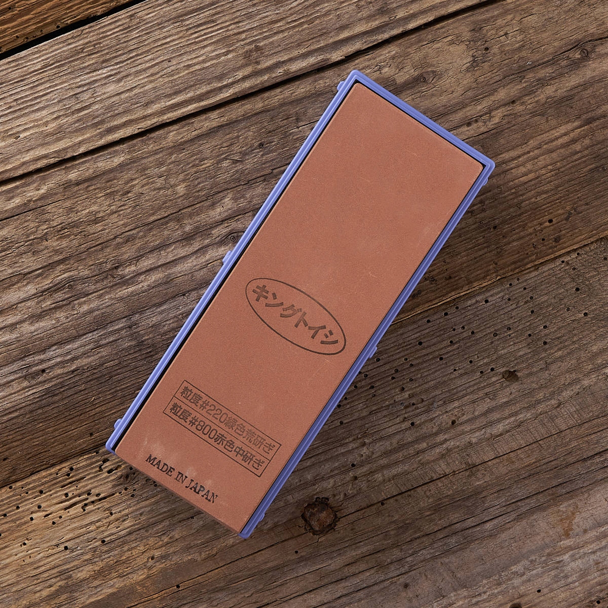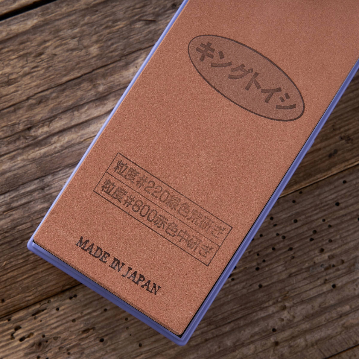 Нижняя сторона с зернистостью 220 идеально подходит для ремонта поврежденных режущих кромок. Его также можно использовать для более серьезных модификаций кухонных ножей. Другая сторона водяного камня King — с зернистостью 800 — предназначена для обычной базовой заточки.