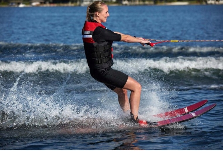 Allegre Combo Red Water Skis идеально подходит для всей семьи. Строительство - это идеальное сочетание прочности и контроля, благодаря которой они очень универсальны и подходят для лыжников на каждом уровне продвижения