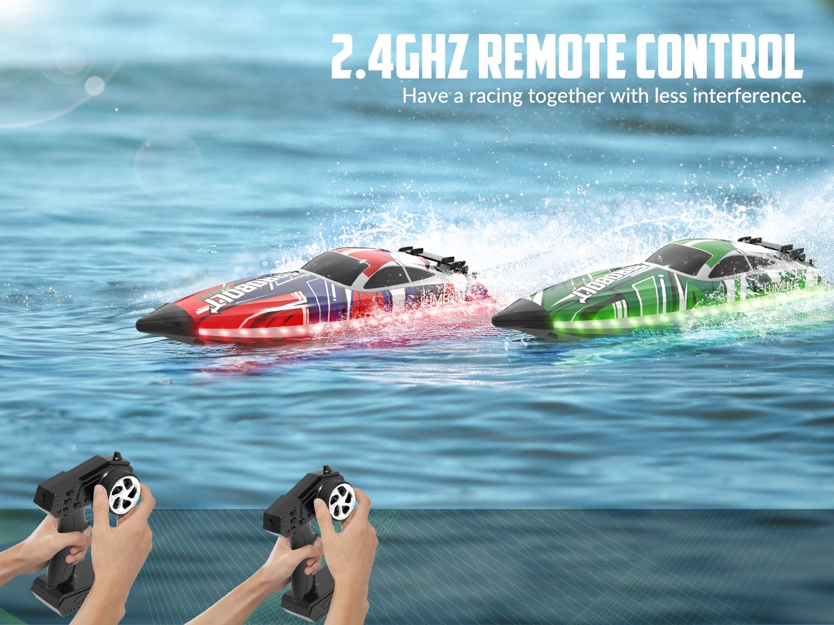 Он построил -в светодиодном освещении, так что веселье вечером принесет большое количество удовлетворения. Благодаря хорошо разработанной конструкции с водными ребрышками и вкладками для обрезки, небольшая лодка остается стабильной в бассейне, озере и даже реке. Благодаря системе водяного охлаждения вам не нужно беспокоиться о перегреве двигателя и регулятора, даже когда лодка достигает максимальной скорости при 55 км / ч.