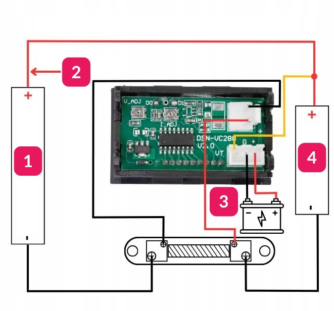 ✅ Широкий диапазон измерения - Прибор позволяет измерять напряжение в диапазоне от 0 до 100 В постоянного тока и силу тока до 50 А, благодаря входящему в комплект шунту.