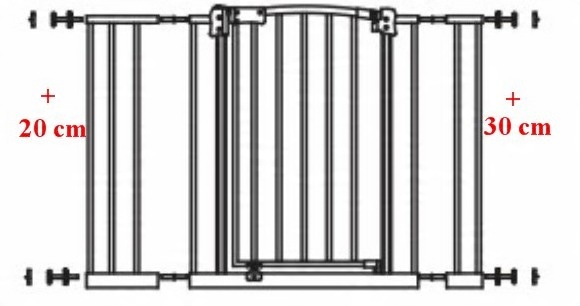 Ворота безопасности со стандартным установочным размером 73-82 см. Дополнительно в комплект входят два удлинителя 20 и 30 см. Благодаря этим удлинителям ворота можно подогнать под ширину проема со следующими размерами:
